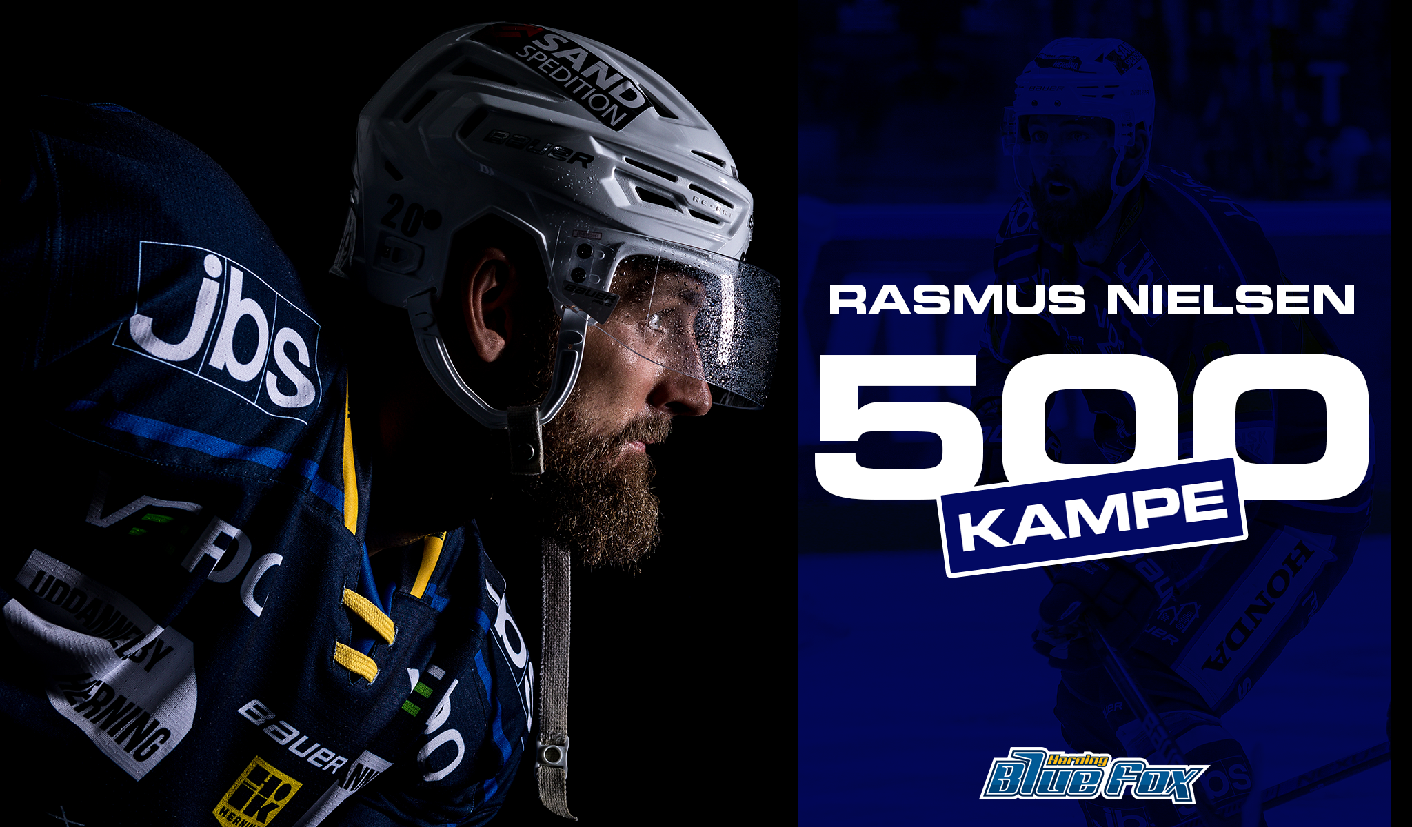 Indtil vi igen kan få lov til at hylde store bedrifter til vores hjemmekampe, skal der hermed lyde et stort tillykke til Rasmus med 500 kampe for Herning Blue Fox, og ikke mindst en kæmpestor tak for din indsats. Vi glæder os til mange flere sæsoner med dig som en vital del af fundamentet på holdet.