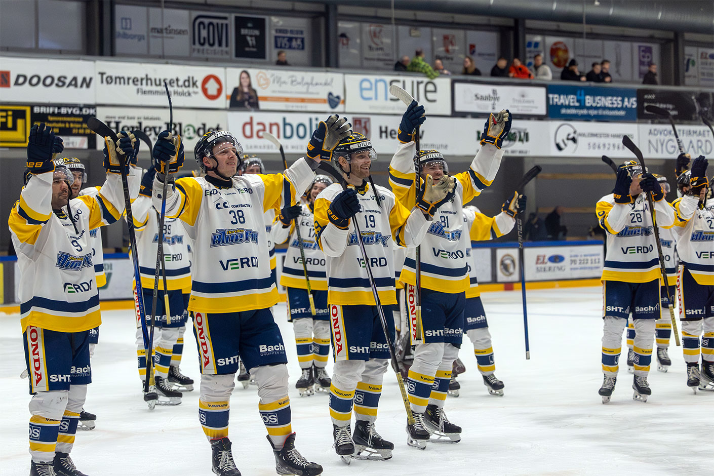 Allertidligst på tirsdag kender vi modstanderen, sikkert er det dog, at Herning Blue Fox spiller den allerførste kamp på hjemmebane i semifinalen tirsdag den 1. april, faceoff er kl. 19.30. Skulle der være et kæmpestort ønske med fra spillerbussen i aften, så må det være, at hele det midtjyske rejser sig sammen med Blue Fox, når vi tager hul på næste kapitel i slutspillet. Så bliv en del af kampen om det danske mesterskab, og køb din plads på lægterne HER
