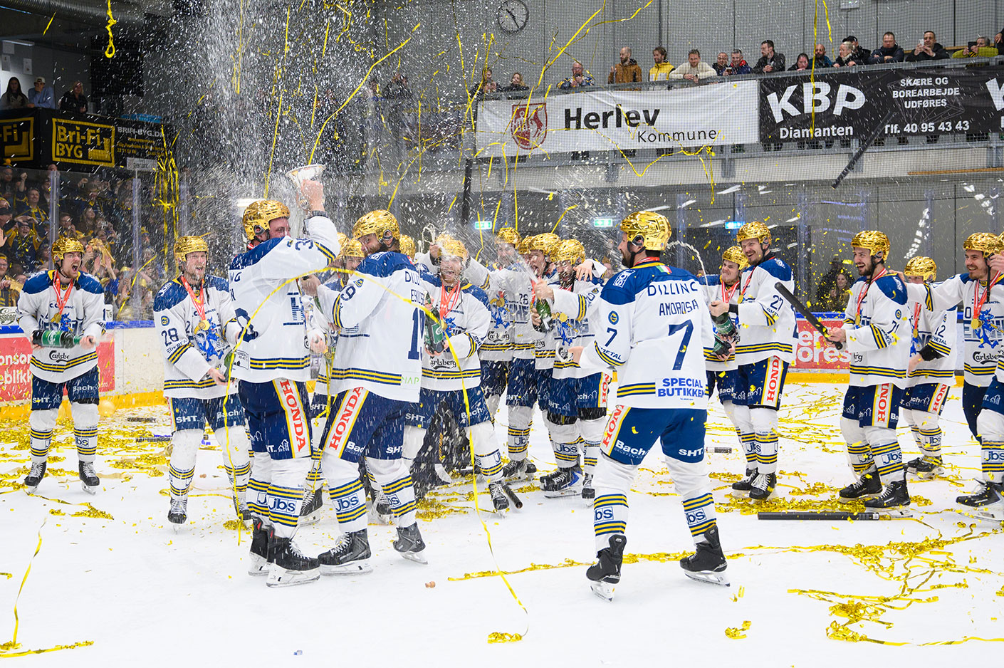 Herning Blue Fox har vundet det danske mesterskab i ishockey for første gang i 14 år og det skal fejres.