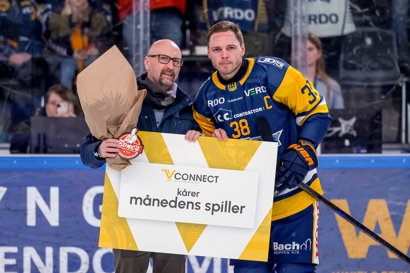 Valget faldt på Morten Poulsen som blev hyldet med blomster og Bone’s gavekort.