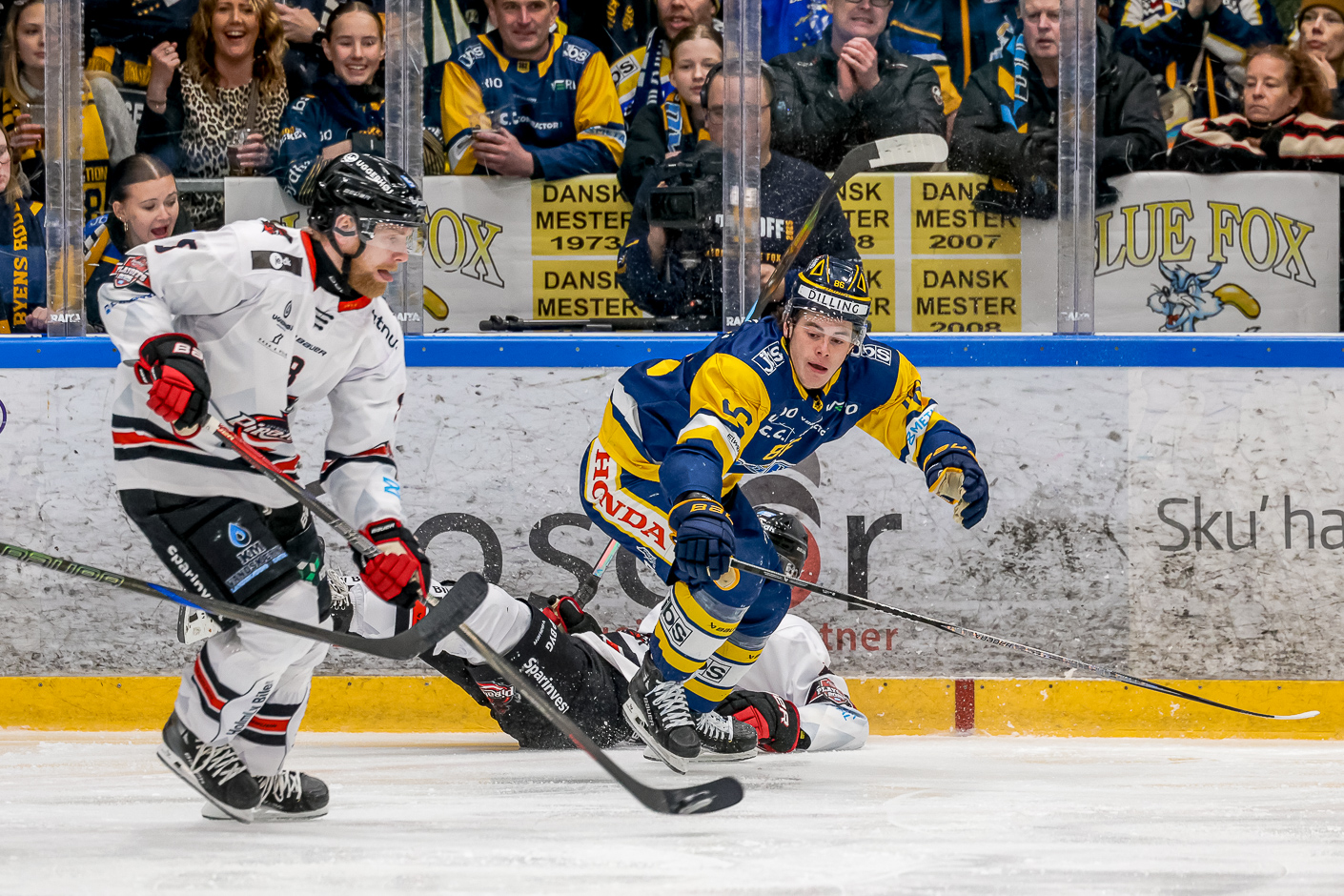 Men trods Blårævene kun mangler 1 sejr til at spille sig i finalen om det danske mesterskab, så er der lang vej endnu. Som minimum i hvert fald de 60 minutters hockey der skal spilles før man enten går i overtid eller har en sejrherre, og det er altså vel at mærke i en serie der har været utroligt tæt i kampene.