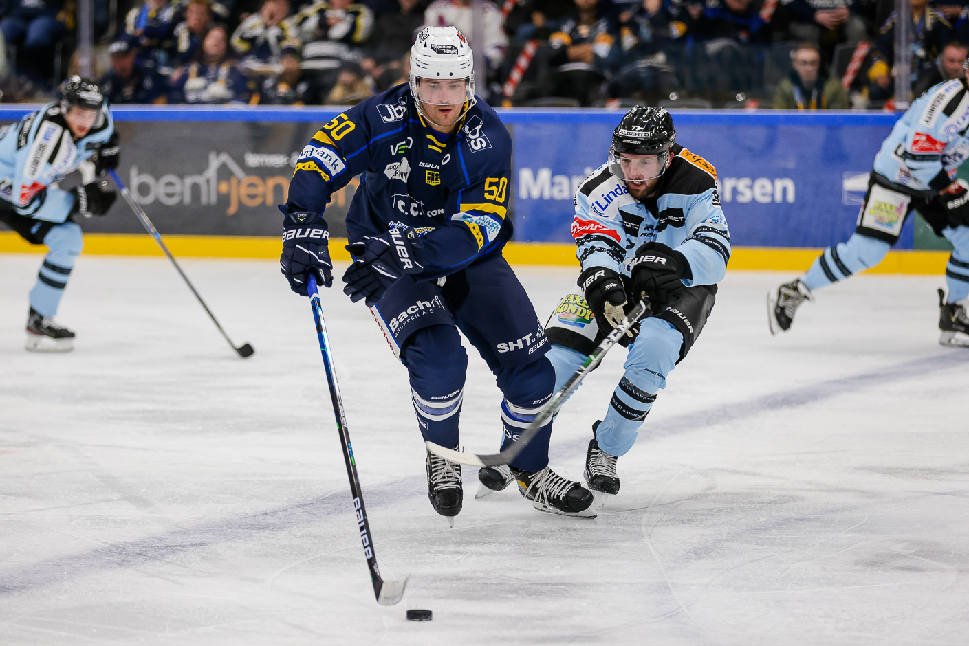 Der er stadig ting der skal forbedres. Skarpheden foran mål skal blive bedre. Tre mål på 49 skud er ikke nok, og så skal der også strammes op når det kommer til spillet med puck i egen zone. Der bliver der simpelthen sløset for meget, og det er der bare ikke plads til. Men vi tager en kamp af gangen, og nu gælder det altså 60 minutter mod SønderjyskE. Sidste møde med ”de lyseblå” blev også afviklet i Vojens, og her leverede Blue Fox 60 minutters rigtig god udebane-hockey, som resulterede i en sejr på 2-0.